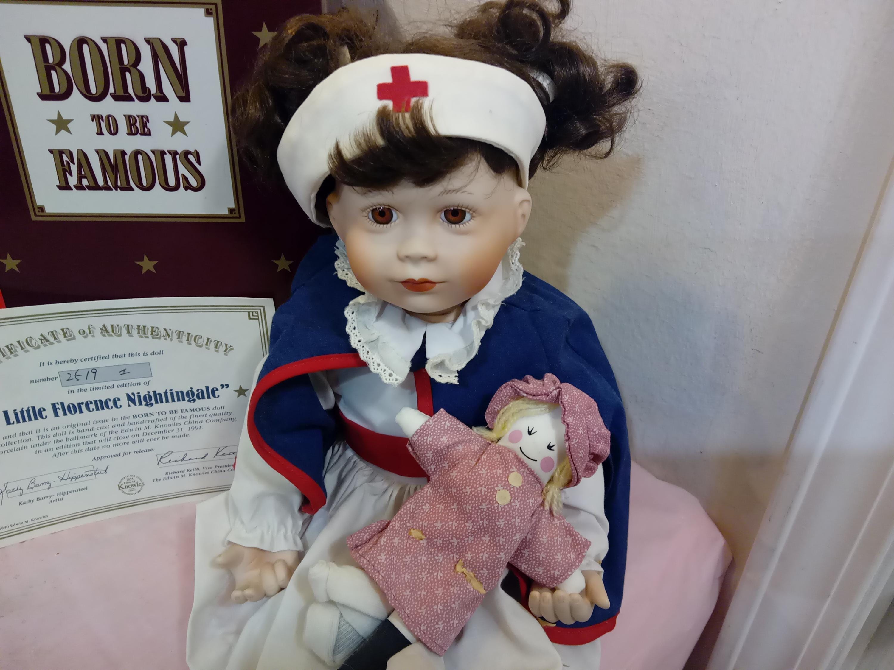 Vintage Porcelain Doll, "Little Florence Nightingale" Born to Be Famous Doll by Edwin M. Knowles, 1990's